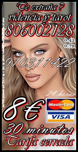 4€ 15 min/ 6 € 20min/9€ 30min /12€ 45min. .TAROT DEL AMOR INFINITO 910311422-806002128 desde Coste min. 0,42/0,79 cm € min red fija/móvil.