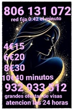 806002149 y 806131072 red fija 0.42 y red móvil 0.79 grandes ofertas de visa 932424782 / 918380034 y 932933512 por 4€ 15 -6€ 20 -10€ 40 m – 15 € 55 – 20 € 90 minutos todas tus preguntas no dudes en consultarme, siempre tendrás una respuesta a te el poder de mi videncia, las gemas, las runas y diversos tarots y oráculos que me ayudaran visualizar todo lo que te preocupa y darle solución precisa……. te esperamos las 24 horas del día. sólo mayores de 18 años. servicio prestado. G.A.L. apartado de correos 164 (46002) valencia