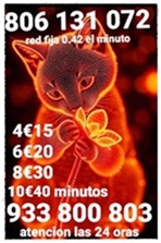 806002149 y 806131072 red fija 0.42 y red móvil 0.79 grandes ofertas de visa 932424782 / 918380034 y 932933512 por 4€ 15 -6€ 20 -10€ 40 m – 15 € 55 – 20 € 90 minutos el tarot es un espejo donde ves tu vida reflejada sin engaños y te ayuda a ver desde lejos lo que puedes hacer. por eso yo con mi videncia y el tarot te abrimos puertas nos, veras que no todas somos iguales. 24 horas sólo mayores de 18 años. servicio prestado.G.A.L. apartado de correos 164 (46002) valencia