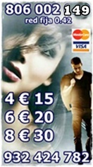 806002149 y 806131072 red fija 0.42 y red móvil 0.79 grandes ofertas de visa 932424782 / 918380034 y 932933512 por 4€ 15 -6€ 20 -10€ 40 m – 15 € 55 – 20 € 90 minutos todas tus preguntas no dudes en consultarme, siempre tendrás una respuesta a te el poder de mi videncia, las gemas, las runas y diversos tarots y oráculos que me ayudaran visualizar todo lo que te preocupa y darle solución precisa……. te esperamos las 24 horas del día. sólo mayores de 18 años. servicio prestado. G.A.L. apartado de correos 164 (46002) valencia