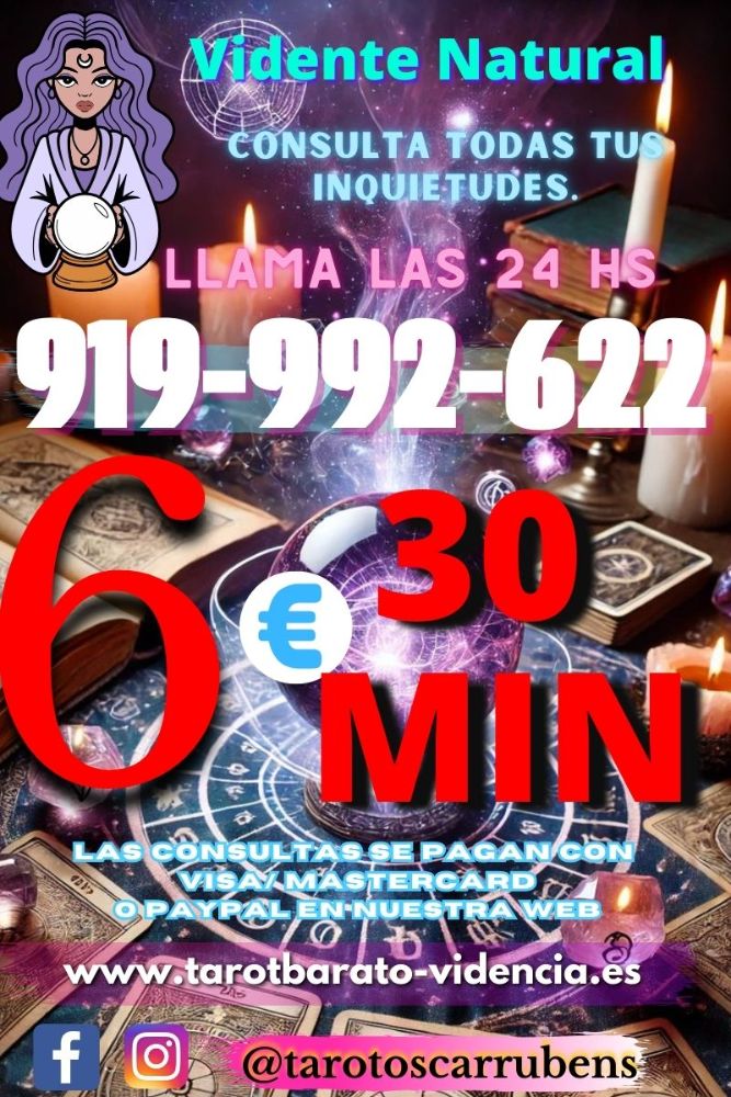 ¿Estas sufriendo por Amor? ¿Sientes que nada tiene sentido?¿No sabes que hacer o qué camino tomar? Consultas al 919 992 622 contamos con ofertas únicas ya que somos el gabinete más económico de España los 30 minutos a solo 6 euros visa cerrada, puedes pagar con tarjeta , paypal o bizum. Contamos con línea directa de 806002188 a solo 0.42 el min por teléfono fijo, 0.79 el min por tel móvil.