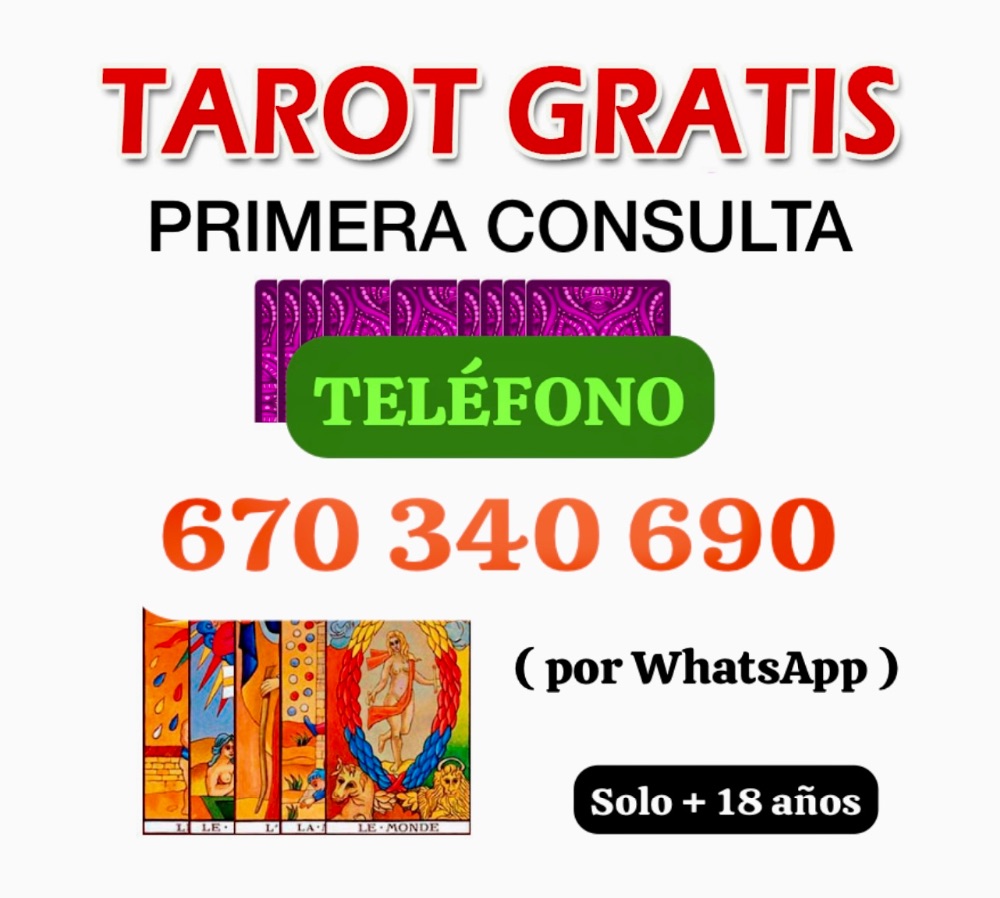 Vidente y Tarotista gratis por WhatsApp , pon tu pregunta al 670 340 690 y te ayudaré gratis , seguiré tu caso de manera personal , sin gabinetes ni esperas , hablaras siempre conmigo por wasap , te ayudo a ser más feliz , solo + 18 años . Por favor se ruega poner donde vio mi anuncio ( en que portal , página , … )